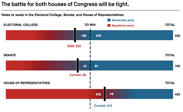 The presidential race will captivate voters most, but critical to a president’s success in implementing their agenda is the configuration of Congress, comprised of the Senate and House of Representatives. Here is what’s at stake, and the paths to victory for each: