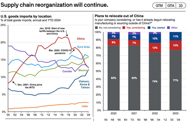 - Regardless of the outcome of the election, we expect this trend will continue, with companies continuing to diversify away from China. Notably, this dynamic has also introduced investment opportunities for those beneficiaries of trade realignment.