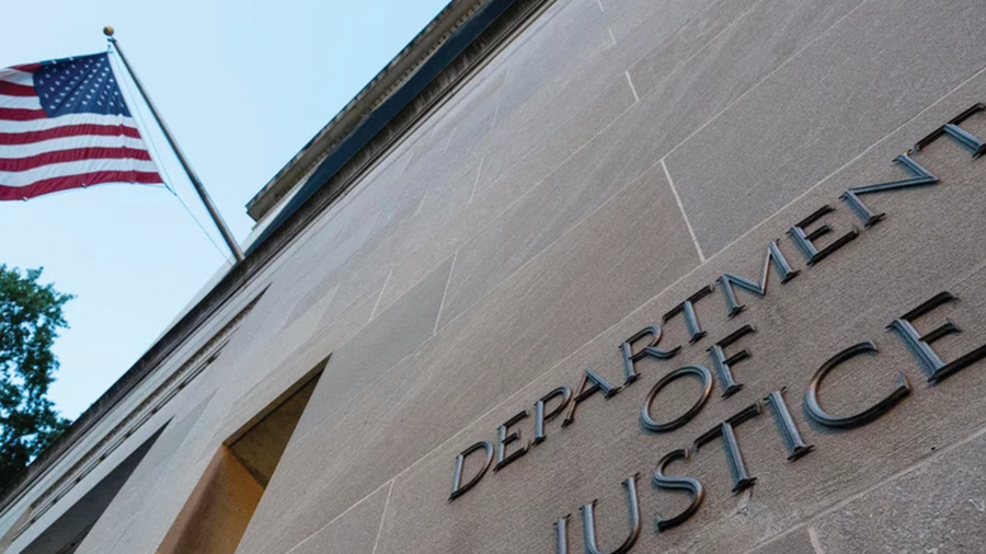 Signage is seen at the United States Department of Justice headquarters in Washington, Aug. 29, 2020. (Image-VOA)