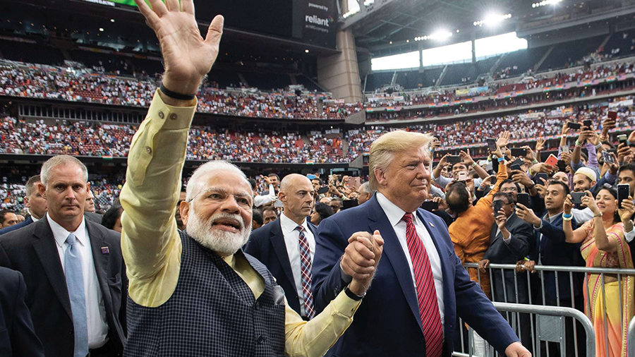 PM Narendra Modi with American President Donald Trump in this 2019 photo. People in India listening to Trump’s January 20 speech couldn’t help but notice the similarities in their ideas. (Image: India Today)
