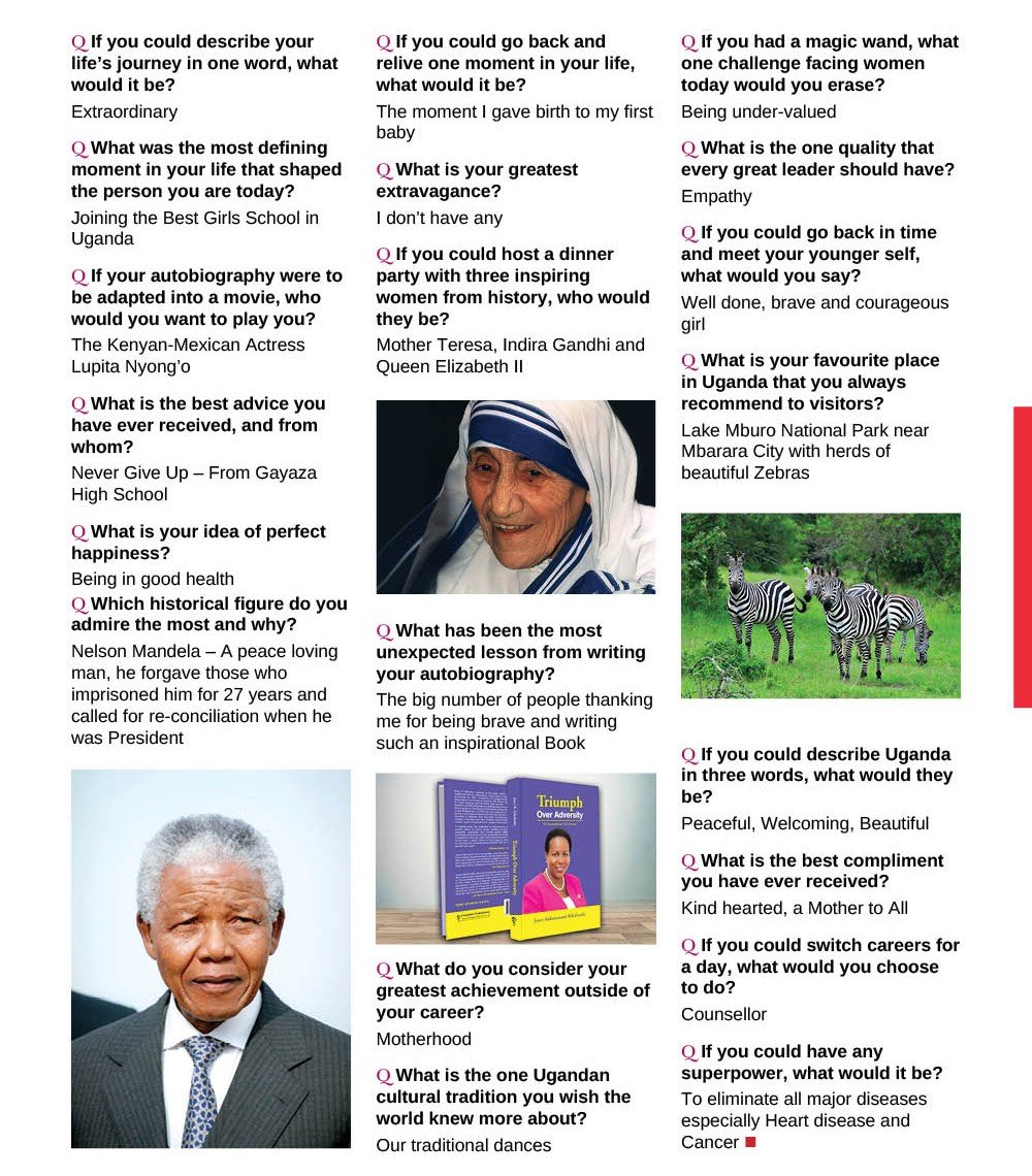 Her extraordinary journey—from her formative years at Uganda’s premier girls’ school to becoming a respected scholar, diplomat, and advocate for women’s empowerment—reflects a life devoted to leadership and impact. In this candid conversation, H.E. Prof. Kikafunda offers a glimpse into the experiences, values, and inspirations that have shaped her. From admiring Nelson Mandela’s reconciliatory spirit to envisioning Lupita Nyong’o portraying her in a biopic, her reflections highlight a life rich in purpose and passion. She speaks of her greatest personal achievement—motherhood, shares her desire to erase the undervaluation of women, and passionately champions Uganda’s vibrant cultural traditions and breathtaking landscapes.