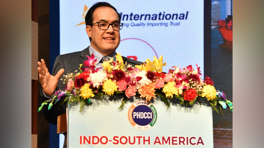 Juan Carlos Rojas Arango, Minister Counsellor at the Embassy of Colombia in New Delhi, articulated a compelling vision for Colombia as a strategic gateway for trade and investment at the Indo–South America Trade and Investment Conclave organised by PHD Chamber of Commerce and Industry.