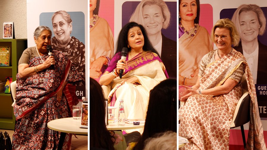 Opening the conversation, Malvika Singh reflected on a cultural shift she has witnessed in recent years, a renewed interest among younger generations in both books and saris. “I’ve personally seen a huge revival in people buying and reading books, and young people buying saris. Somewhere, it has turned,” she observed, setting the tone for a discussion that bridged tradition and modernity.